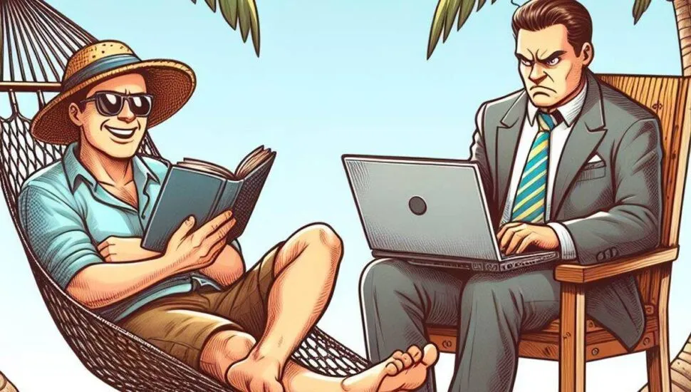 Um sujeito estava trabalhando quando viu um homem deitado numa rede sem fazer nada, e disse: