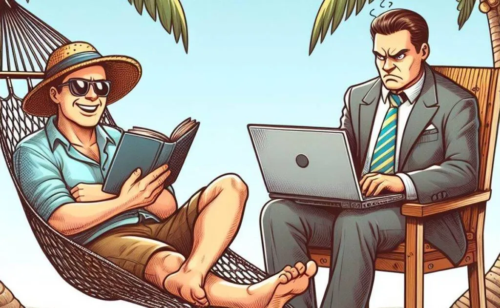 Um sujeito estava trabalhando quando viu um homem deitado numa rede sem fazer nada, e disse: