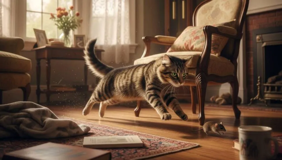 Nem havia saído totalmente da toca e o gato – NHAAAC! Abocanhou-o…