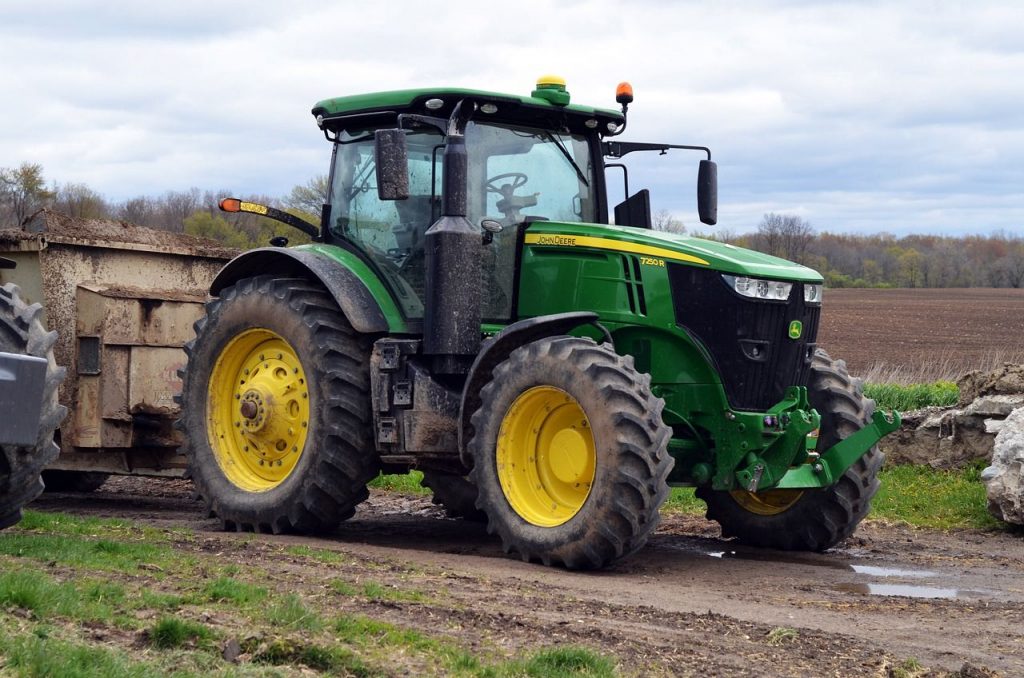– Dirigindo um trator.