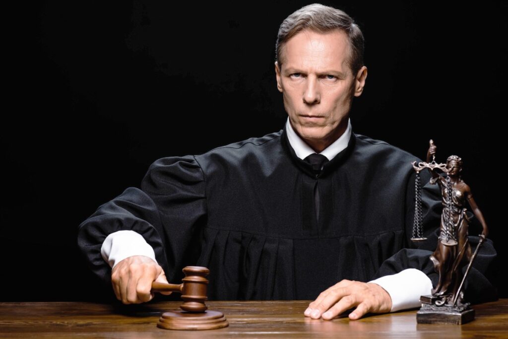 – Seu cretino! – grita uma voz do fundo do tribunal.
