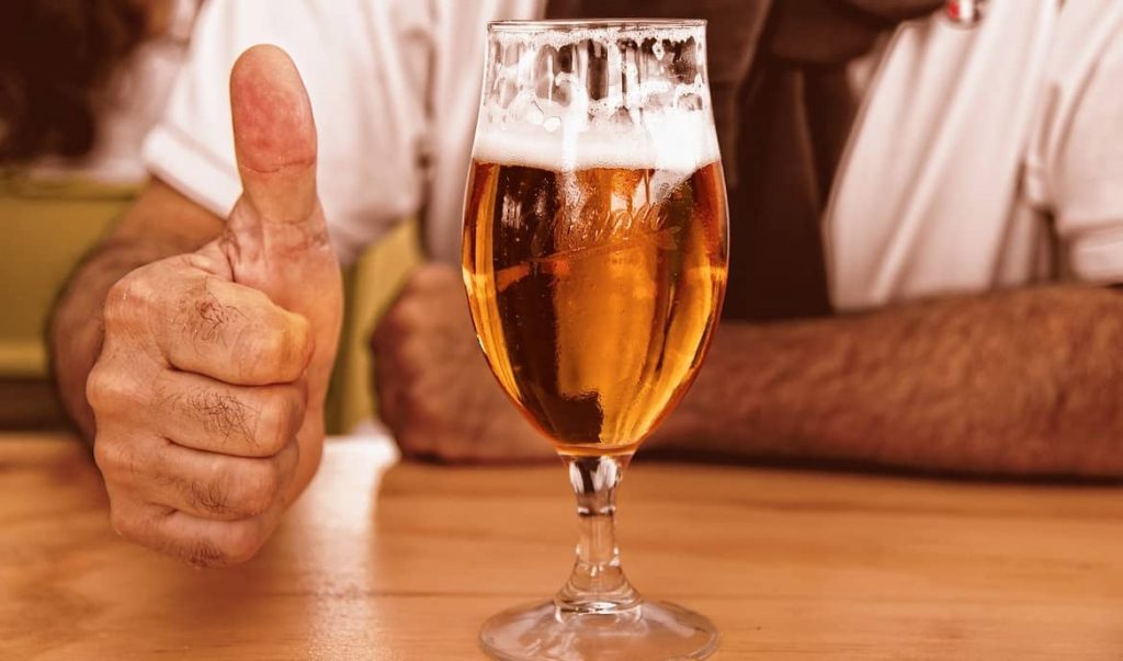 O pai fica em silêncio, bebe um gole de cerveja e diz: