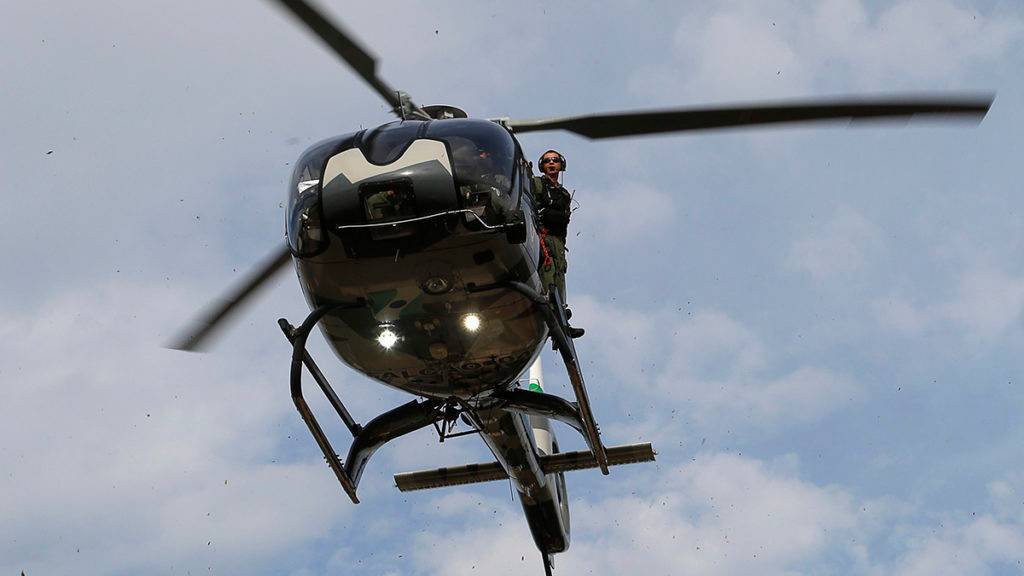 No momento do desespero, da agonia, quando nos encontramos muitas vezes numa encruzilhada entre a vida e a morte, pedimos aos céus por ajuda. Para quem crê, ela vem sempre, para alívio ou conforto. Em concomitantemente a isso, bravos resgatistas da Polícia Militar surgem por entre as nuvens para ajudar na missão de salvar (resgatar) vidas que estão à beira do fim. Um trabalho louvável, ágil e que tem o poder de manter a caneta do destino nas nossas mãos. Na imagem em questão, feita pelo repórter fotográfico Átila Alberti, um motoqueiro vítima de um acidente foi levado com vida ao Hospital do Rocio, em Campo Largo. (Eduardo Luiz Klisiewicz)