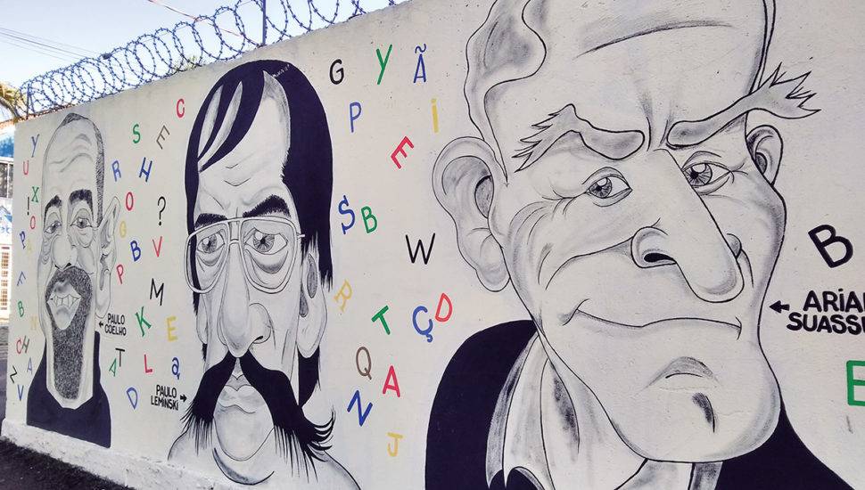 O trabalho feito nos muros do Colégio Marli Queiroz de Azevedo, no CIC, é de encher os olhos. Estivemos lá dia desses para acompanhar uma outra pauta, mas o repórter fotográfico Gerson Klaina e seus “olhos de lince” não deixaram de observar as belíssimas pinturas de grandes poetas e escritores brasileiros. Um dos destaques dessa imagem em especial é o curitibano Paulo Leminski, que dia desses (24 de agosto, para ser mais exato) faria aniversário. Os belos traços do grafiteiro são tão belos quanto os escritos deixados por esses gênios. Se você é o autor desta obra, entre em contato com a Tribuna pelo Whatsapp (41)996839504. (Eduardo Luiz Klisiewicz)