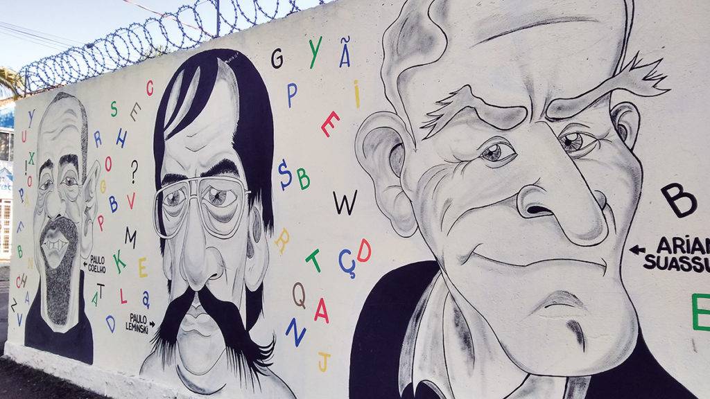 O trabalho feito nos muros do Colégio Marli Queiroz de Azevedo, no CIC, é de encher os olhos. Estivemos lá dia desses para acompanhar uma outra pauta, mas o repórter fotográfico Gerson Klaina e seus “olhos de lince” não deixaram de observar as belíssimas pinturas de grandes poetas e escritores brasileiros. Um dos destaques dessa imagem em especial é o curitibano Paulo Leminski, que dia desses (24 de agosto, para ser mais exato) faria aniversário. Os belos traços do grafiteiro são tão belos quanto os escritos deixados por esses gênios. Se você é o autor desta obra, entre em contato com a Tribuna pelo Whatsapp (41)996839504. (Eduardo Luiz Klisiewicz)