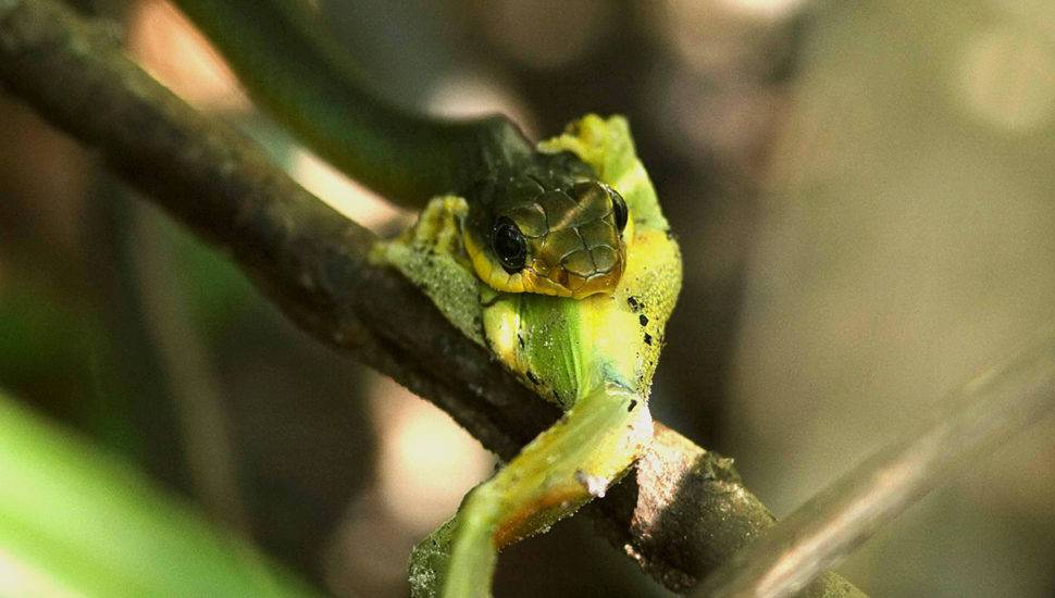 Uma cobra cipó devora uma perereca. A bela imagem do repórter fotográfico Lineu Filho é um retrato perfeito da Lei da Natureza. E ela é linda. E seria perfeita se seguíssemos sua ordem natural, sua ordem “normal”. A gente (seres humanos) tem o costume de deturpá-la. Só o bicho homem, essa coisa esquisita, mata por prazer. E é por essa ânsia de matar, de saciar esses desejos brutais, que ele comete muitas barbaridades. É o sal nas costas do sapo, a paulada na cobra d’água. “Vencer” é melhor que coexistir. A questão, que alguns teimam em não perceber (e não é de hoje), é que o bicho homem tá matando sua própria espécie e, por incrível que pareça, o faz algumas vezes por prazer. Aí é que o “bicho pega”. (Eduardo Luiz Klisiewicz)