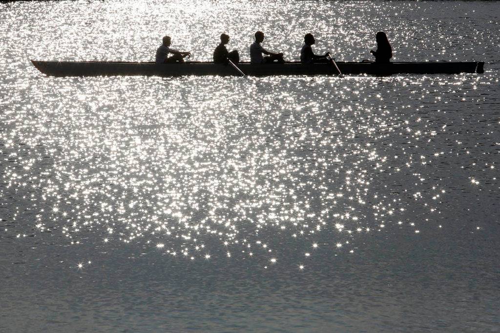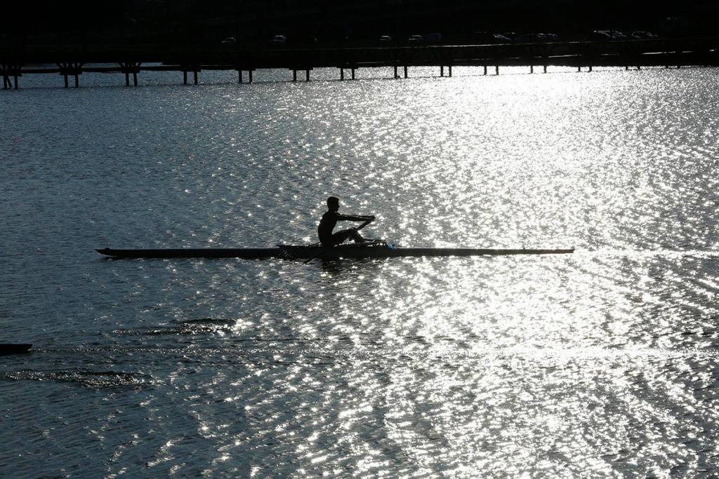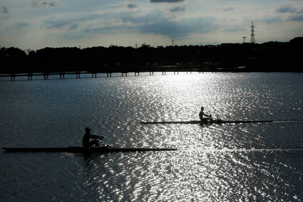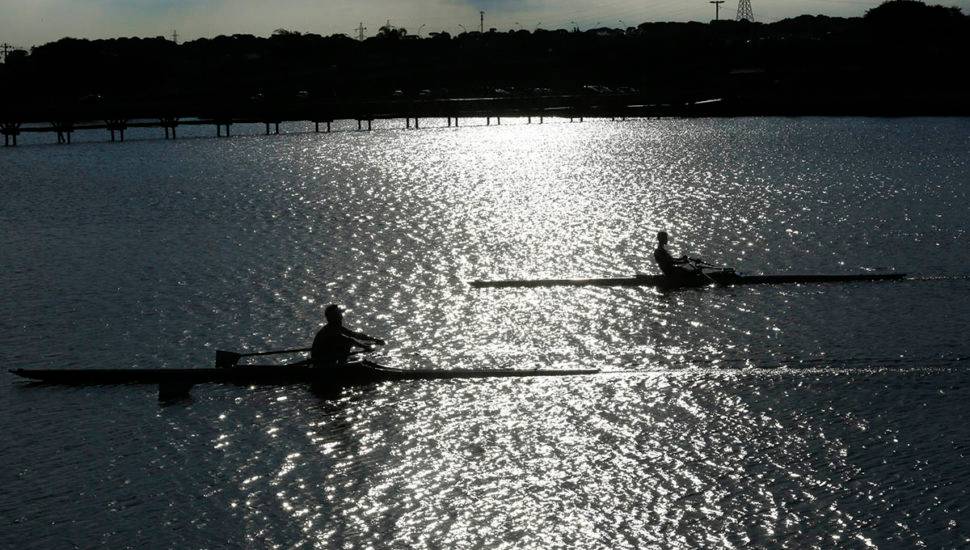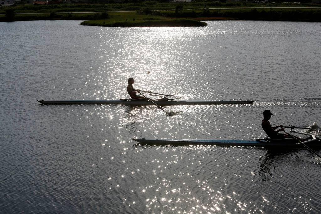 Pratica de remo no Parque Náutico no Boqueirão atraem vários adeptos da canoagem. Eles também colaboram para a captura de belas imagens.