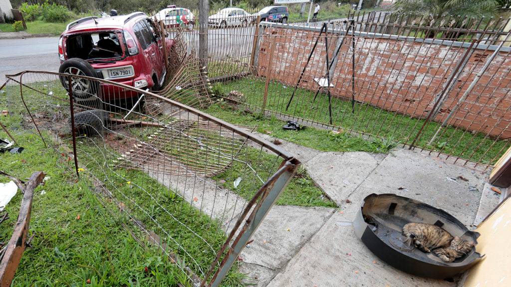 Um piá “tongo”, de 15 anos, pegou o carro da mãe escondido, se perdeu numa curva e arrebentou o bólido num poste da Avenida Justo Manfron. Em ato contínuo, destruiu o portão de uma casa ali perto. O acidente assustou até os policiais pelo estado com que o carro ficou. A batida, na verdade, não é novidade (noticiamos na semana passada). O detalhe que passou despercebido e você possivelmente não se atinou também, é um gatinho ali da vizinhança aproveitou a tampa do estepe que voou longe e improvisou uma caminha. A intrépida repórter fotográfica Aniele Nascimento fez o flagra do bichano curtindo o movimento e simplesmente “sendo gato” no meio de todo aquele furdunço. (Eduardo Luiz Klisiewicz)