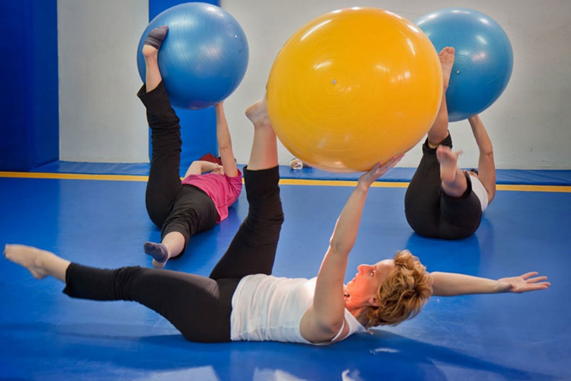 O treino usando a bola propicia estabilidade postural e equilíbrio, prevenindo lesões, dores e quedas, o que beneficia pessoas com problemas na coluna e gestantes, por exemplo.