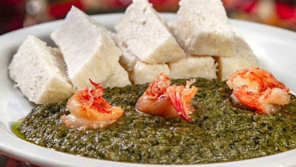Assim como outros tantos preparos, o Ndolé pode ser servido com o fufu, uma espécie de polenta – sem sal, atenção – que pode ser feita de mandioca, inhame ou arroz. “A gente não tem esse hábito brasileiro de obrigatoriamente ter um acompanhamento, como feijão com arroz. Mas, sempre temos um molho mais espesso servido com algo”.