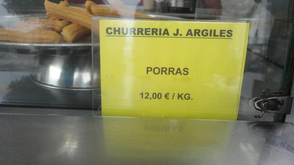 Hoje o meu post é curto, mas claro e direto. Não se assuste se estiver na região da Catalunha na Espanha e se deparar com a venda desse intem curioso da culinária espanhola. As porras são uma espécie de churros muito comuns na região.