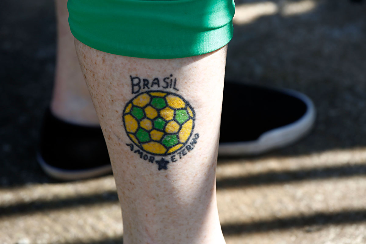 O gosto pela seleção rendeu até uma marca em seu corpo. “Sabendo da minha paixão, um amigo que também assiste aos jogos conosco, me presenteou com uma tatuagem. Agora levo a seleção omigo sempre”.