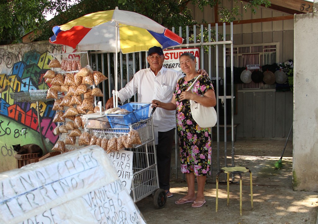 O número 525 da Rua Professora Edmee Neal Algouver, no Alto Boqueirão, se transformou em uma verdadeira vitrine da sobrevivência nos últimos tempos para o casal Arnold Andrade dos Santos, 73 anos, e Maria Hamilta Andrade dos Santos, 69. A renda da aposentadoria dos dois encolheu diante de tantos aumentos em custos fixos, como aluguel, luz e água. Para driblar esses custos e mais a alta dos preços nos alimentos, o jeito foi fazer da porta de casa a saída para complementar esse dinheiro perdido com a inflação.