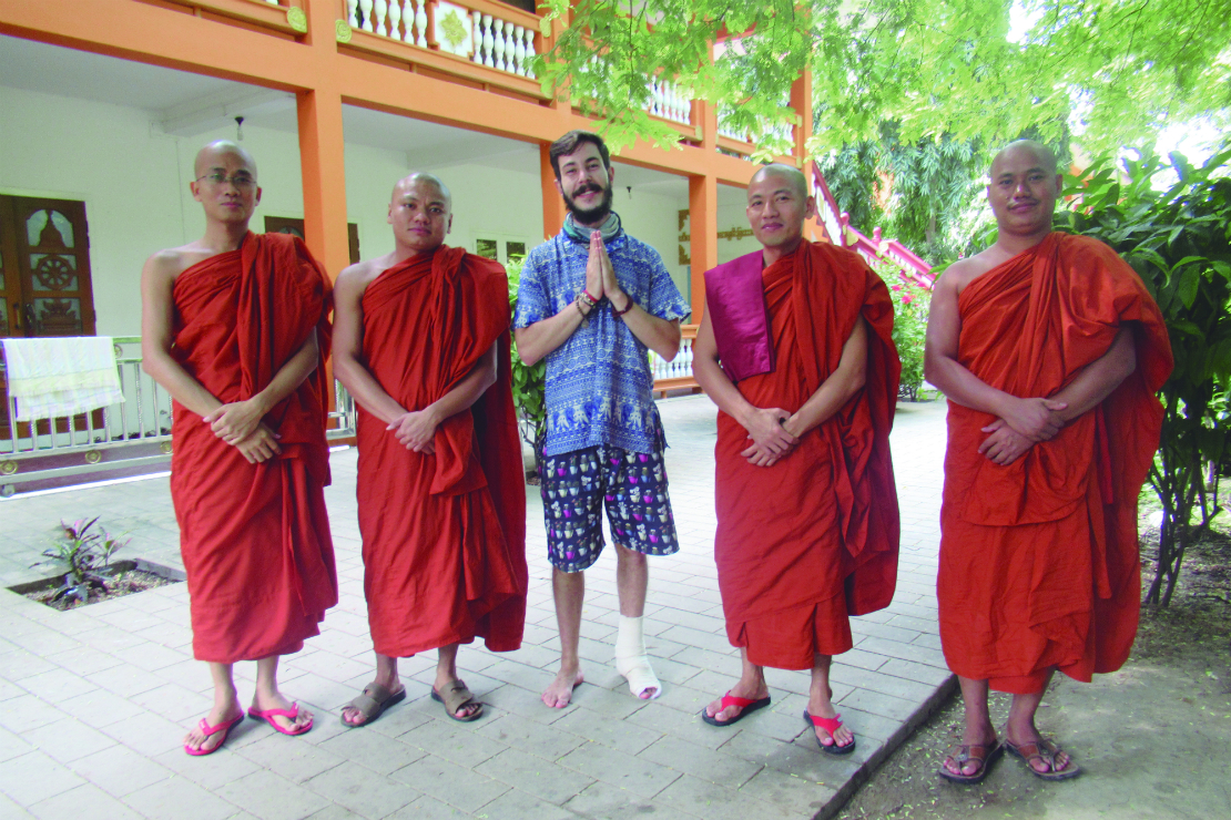 “Por não ter tanta experiência, resolvi chegar até a altura máxima indicada para não profissionais, que ainda assim era alta: 5 mil metros. Na descida, comecei a passar mal e apressei o passo, mas nisso acabei quebrando o pé. De lá, fui para Mianmar, onde acabei apelando para um médico, que me disse que eu até poderia seguir viagem, mas teria que ficar em repouso”.