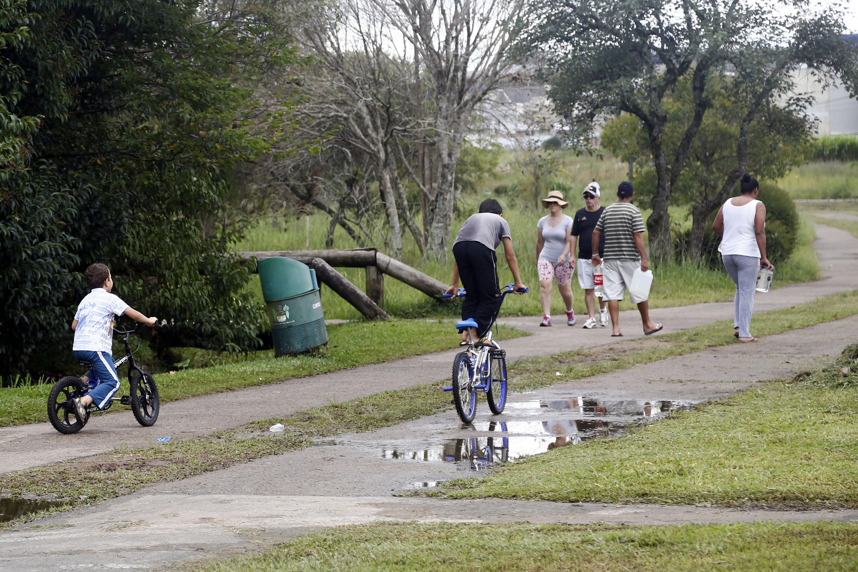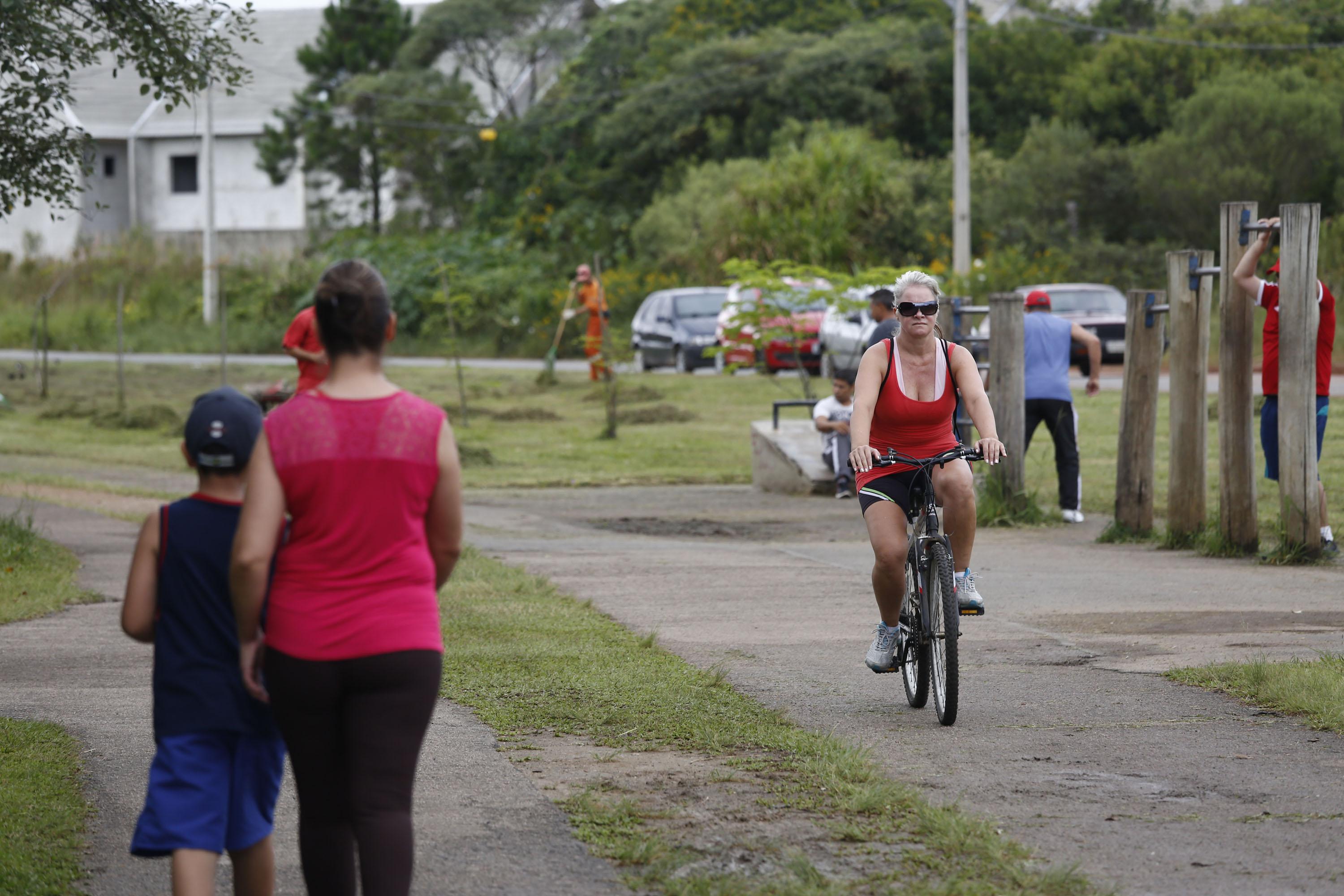 Outra questão que incomoda quem faz caminhada é o tráfego de bicicletas pela pista. Placas indicam que é proibido usar o meio de transporte no local. “Se não tomar cuidado eles passam em cima, porque andam em alta velocidade. Além de atrapalhar os pedestres, tem o perigo de atropelar”, conta Valdemir. Segundo ele, o movimento de bikes é intenso todos os dias pela manhã cedo e à tarde. Thiago diz que anda de bicicleta pelo parque e nunca reparou nas placas. “Não tem organização, é bicicleta e gente junto na pista, tenho medo de atropelar alguém”, admite.