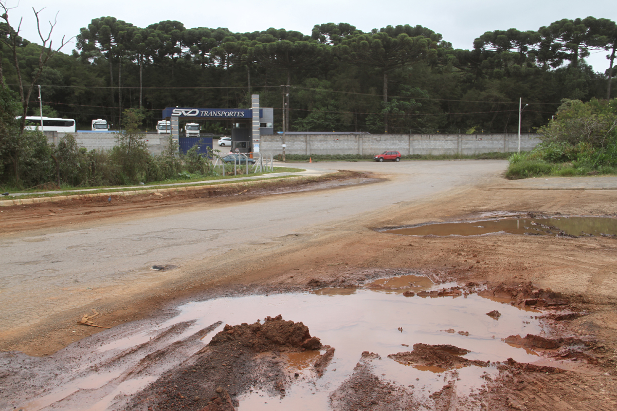 Rua Alfredo Moro, no entorno da fábrica da Volvo é praticamente intransitável. Foto: Gerson Klaina.