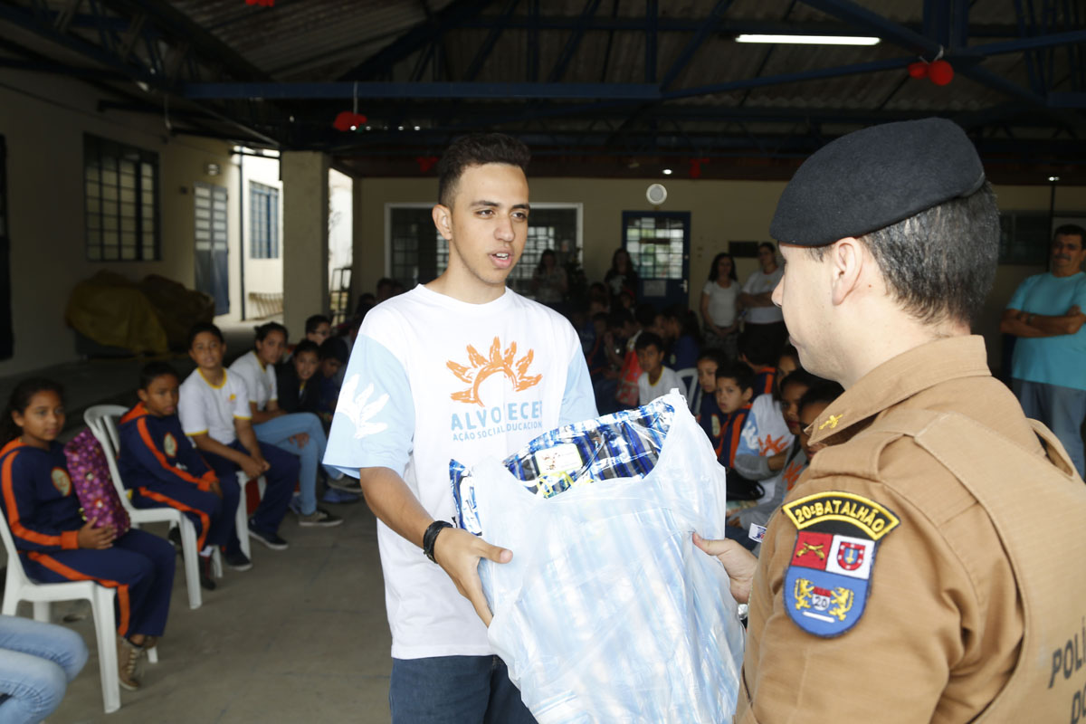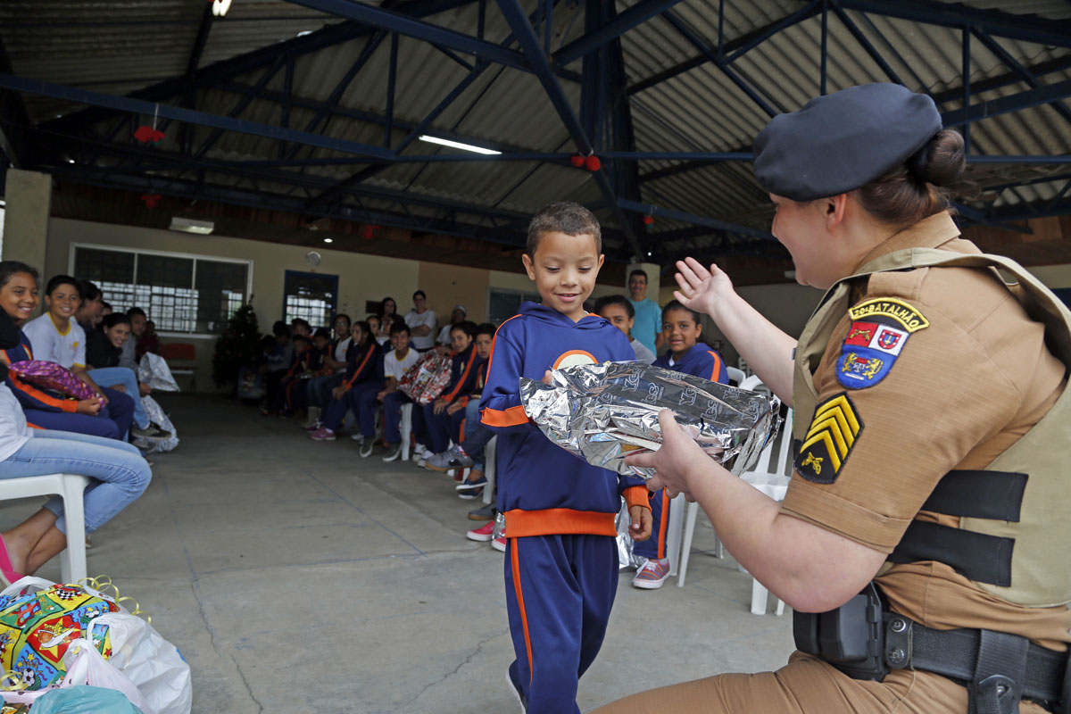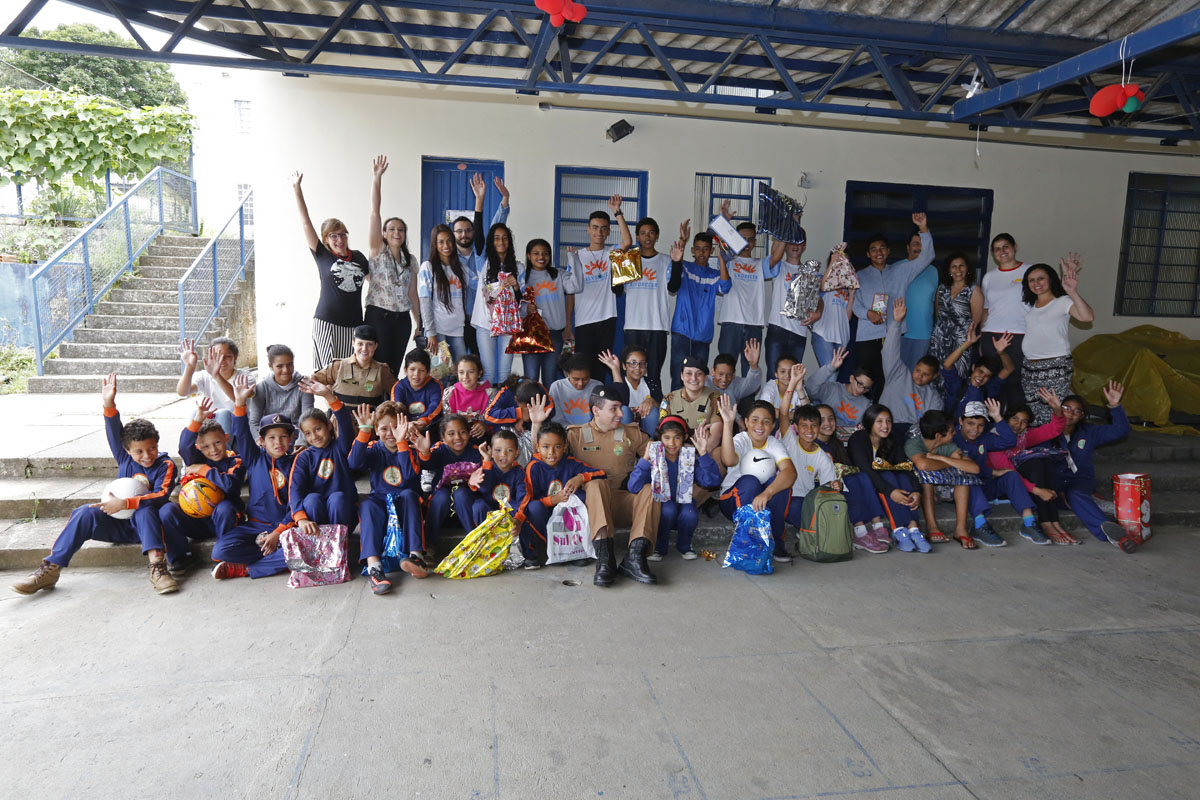 Os policiais militares do 20.º Batalhão que apadrinharam as crianças da Alvorecer tiveram o cuidado e carinho de não deixar faltar ninguém da lista. Os policiais se organizaram, identificaram todos os presentes com os nomes dos policiais que estavam presenteando e com os nomes das crianças que os receberiam, além da preocupação de que o presente fosse adequado à idade. E ainda levaram alguns “sobrando”, para alguma emergência.