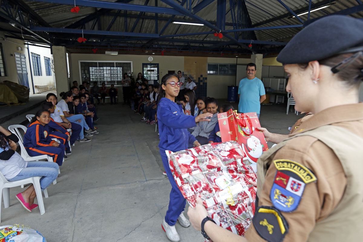 Já a Alexandra, 14 anos, não quis abrir o presente. Ela disse que só abrirá na noite de Natal, junto com sua mãe, porque é mais empolgante e emocionante. Ela controlou a curiosidade e ficou com o pacote fechado, dentro da sacola. Ela ainda disse que não esperava ser presenteada. “Esperava ganhar uma lembrancinha somente”, disse ela, surpresa. “Nunca imaginei que ganharia um presente de Natal de um policial militar”, revelou.
