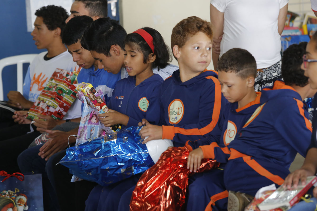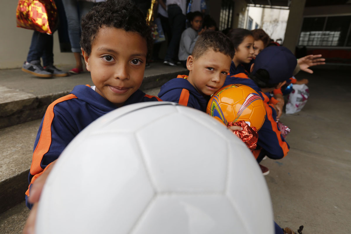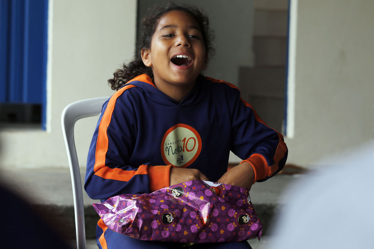 As reações das crianças e adolescentes ao receberem os pacotes foram as mais variadas. O Matheus Gabriel, de 7 anos, ganhou a bola que tanto pediu. Gostou tanto, que beijou o brinquedo quando o tirou do embrulho de presente. “Beijei porque ela é igualzinha a um troféu. A minha bola está murcha e não tenho bomba pra encher. Mas eu queria uma nova. E essa aqui é a minha bola nova”, alegrou-se o garoto, já pensando em quem ia convidar pra uma pelada à tarde.