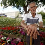 O responsável por esse jardim é Seu Misael de Oliveira Braz. Aposentado há 17 anos, ele nasceu em um sítio na cidade de Joaquim Távora, município de 10 mil habitantes localizado no Norte Pioneiro Paranaense. Lá, cresceu ajudando seu pai a cultivar a terra, plantar e colher. “Trabalhei na lavoura dos meus pais até comprar minha própria chácara e começar a plantar feijão. Eu carregava sacos e sacos pra cima e pra baixo, e sempre gostei de trabalhar com a enxada”, recorda.
