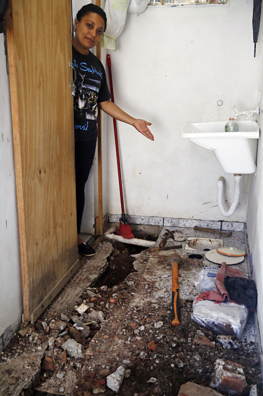 Segundo Rosângela, pelo menos quatro vizinhos sofrem com o problema. O esgoto da rua invade a casa da aposentada Clener Luiza dos Santos Souza, 61, desde dezembro. “Toda vez que chove alaga tudo. A gente reclama, eles vêm aqui e falam que não podem fazer nada por causa da chuva”, conta.