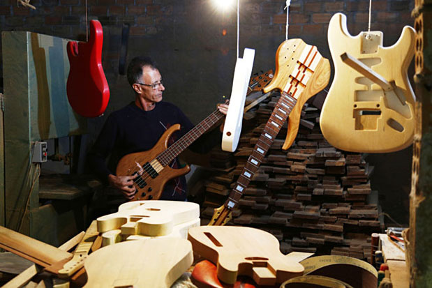 Transformar madeira em arte e em som. É basicamente isso que o luthier Osny Zambuzzi, de 59 anos, faz da vida, em sua pequena oficina localizada no bairro Cajuru. Por lá, ele talha grandes pedaços de madeiras tipo maple shape e cedro, visando o melhor design para os baixos e guitarras, que recentemente vêm ganhando o mundo. “Hoje temos clientes na Europa, mas principalmente nos Estados Unidos. É muito bom ver o nosso trabalho ganhando o planeta, fazendo pessoas de outros países felizes”, orgulha-se.