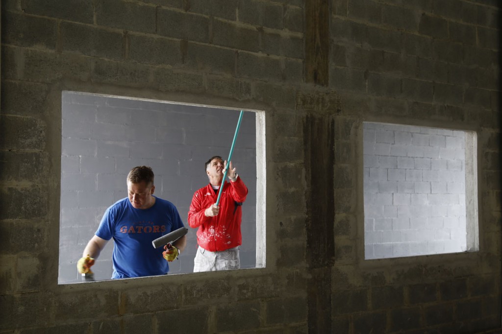 No canteiro de obras no Parque dos Peladeiros, o que menos se fala é português. Isto porque um grupo de sete voluntários ingleses, do Liosn Raw, saiu de Londres para passar um tempo em Curitiba, pegando no pesado: levantando paredes, mexendo cimento, fazendo o piso, pintando, erguendo telhado, enfim, serviços de construção civil. No grupo há vários profissionais, como contador, diretor de escola e especialista em conservação da natureza, entre outros.