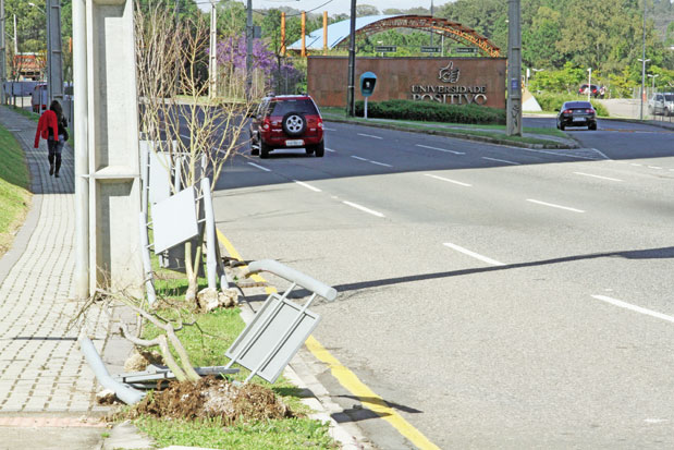Ilda também conta que os acidentes automobilísticos têm ocorrido com frequência nos últimos meses. As constantes colisões já destruíram os canteiros do condomínio onde ela trabalha. “Depois do sinaleiro que há no cruzamento com a Rua Professor João Falarz, os motoristas aceleram forte, pois não tem radar mais e acabam perdendo o controle nas curvas. Muitas proteções das árvores da calçada foram arrancadas com as batidas”, conta.