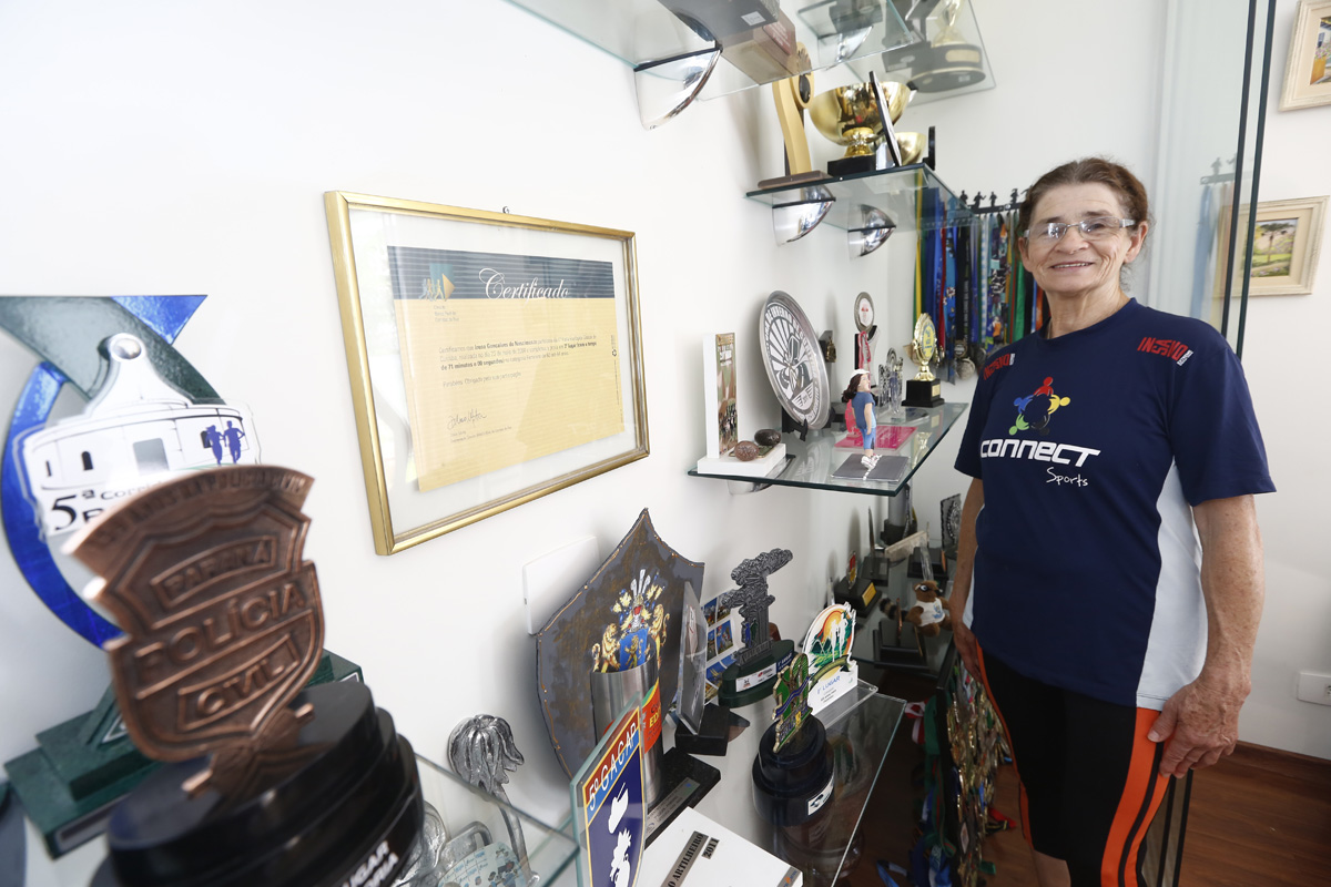 “Comecei a caminhar com uns 55 anos, por conta própria e pouco depois passei a correr. Levava minha filha para a escola a pé às 7h e depois seguia correndo para o trabalho, isso porque me sobrava tempo até as 9h, horário em que eu entrava no serviço. Eram cerca de 10 quilômetros todos os dias e logo a corrida virou minha paixão. Hoje correr é tudo pra mim, é minha saúde, não posso ficar sem e não me imagino sem ela, não pretendo parar tão cedo”, revela. Ela costuma percorrer 10 km em uma hora e seis minutos.