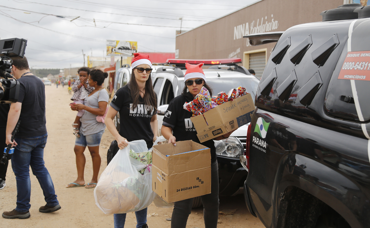 Camiseta da Polícia Civil, viatura preparada e touca de Papai Noel. Foi exatamente assim que os policiais da Divisão de Homicídios e Proteção à Pessoa (DHPP) se prepararam, na manhã desta terça-feira (19), para uma operação pra lá de diferente: entregar presentes para crianças do bairro Caximba, em Curitiba.