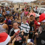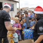 Logo na chegada das viaturas, os olhares assustados transmitiam somente o reflexo do que acontece com quem vive por ali, que está acostumado com a chegada da polícia em situações ruins. Mas as crianças logo denunciaram: “estão com touca de Papai Noel. Vão dar presentes”, e aí a fila já se formou.