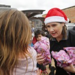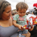 “A polícia nem sempre está aqui, mas quando vem, nunca é por um bom motivo, a gente sabe. O que aconteceu hoje, pra mim, foi muito emocionante porque eu mesmo não teria dinheiro para dar um presente para a minha filha”, contou Adriana Ferreira dos Santos, que estava com a pequena Camila, de 2 anos, no colo, já com um urso de pelúcia que ganhou.