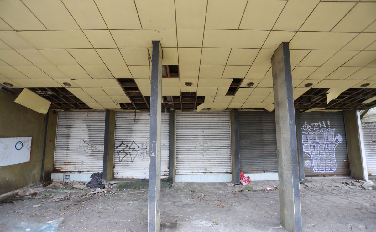Ao invés de um novo destino, o centro empresarial parou no tempo e logo começou a atrair moradores de rua e ladrões, que chegaram a tomar conta do prédio há alguns anos. “Final do dia era aquela barulheira, cheiro de drogas e se olhasse pelas janelas dava pra ver eles depredando tudo. Levaram cabos, fios, materiais, até não sobrar mais nada”, revela Adriano. E continua. “Tá vendo aquele buraco?” pergunta apontando para uma das paredes do prédio. “A ideia era invadir o estacionamento do mercado ao lado por ali e assaltar os clientes. Sabemos que eles fizeram isso algumas vezes”, afirma.