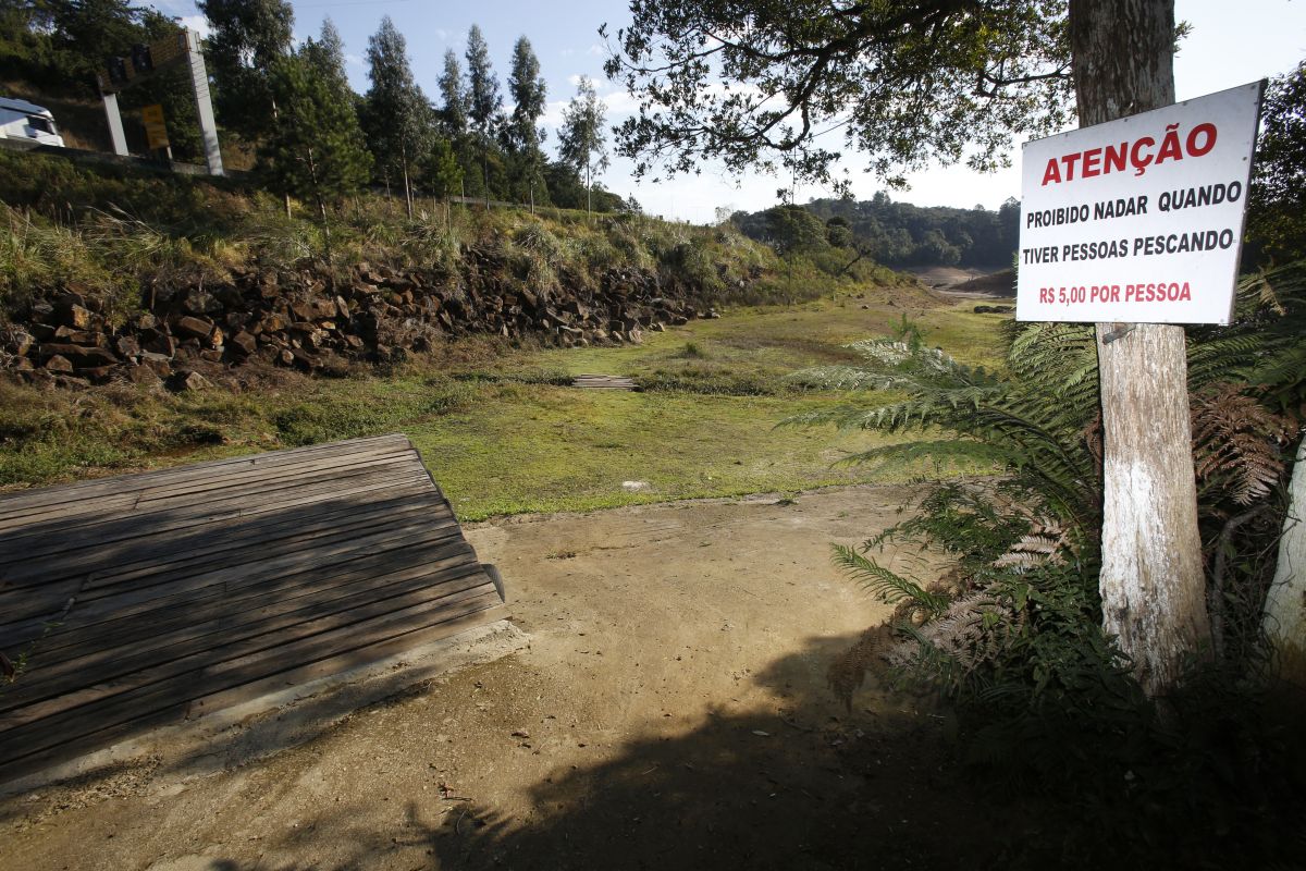 “Atenção: proibido nadar enquanto tiver pessoas pescando”, diz a placa pregada numa árvore à beira de um trapiche, na Represa do Vossoroca, em Tijucas do Sul, na região metropolitana de Curitiba (RMC). Insólito. Já que, há um bom tempo, não dá mais para nadar e muito menos pescar no reservatório situado às margens da rodovia BR-376, que liga Paraná e Santa Catarina. O motivo? A baixa do nível da água da represa que, hoje, conta com apenas 16% da capacidade total. Sob o olhar preocupado dos comerciantes que dependem da barragem para viver, aos poucos, o mar vira sertão e muitos lamentam a situação, se perguntando até quando o nível da água ficará tão baixo.