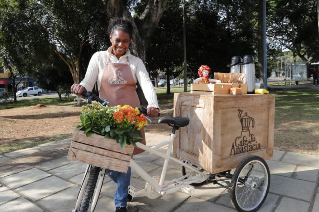 “Primeiro sou mãe, depois empreendedora e dona do primeiro food bike de Curitiba”, assim define Cleise de Lima, 50 anos, moradora do bairro Santa Quitéria e responsável pelo Café da Tia Anastácia, uma nobre homenagem para a personagem do ‘Sítio do Pica Pau Amarelo’, da obra de Monteiro Lobato.