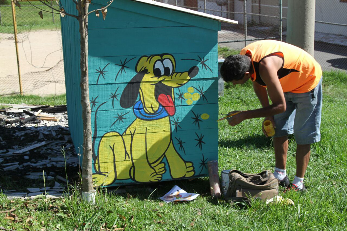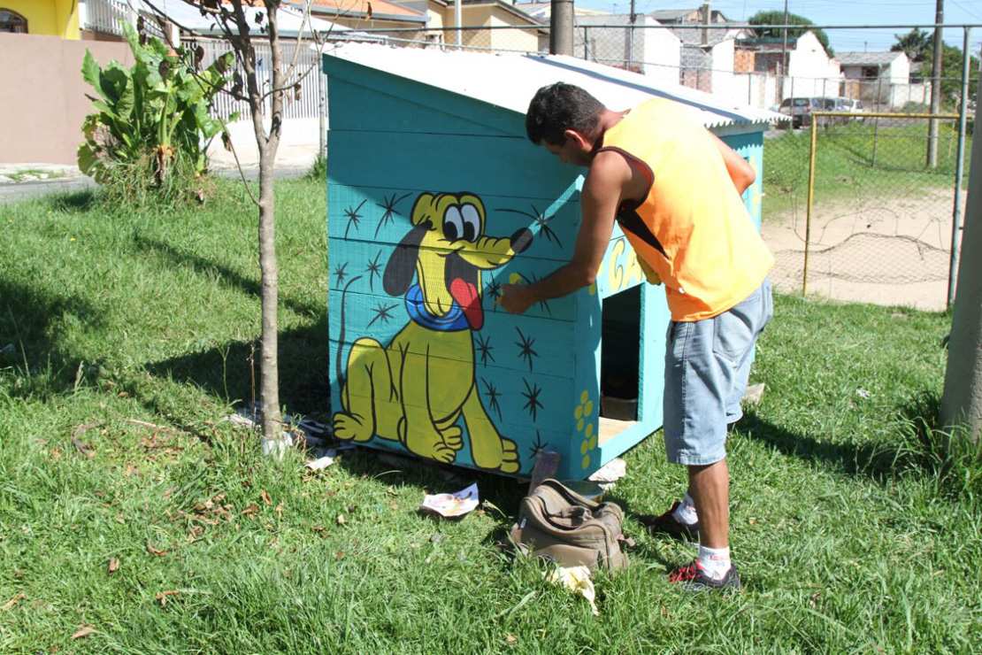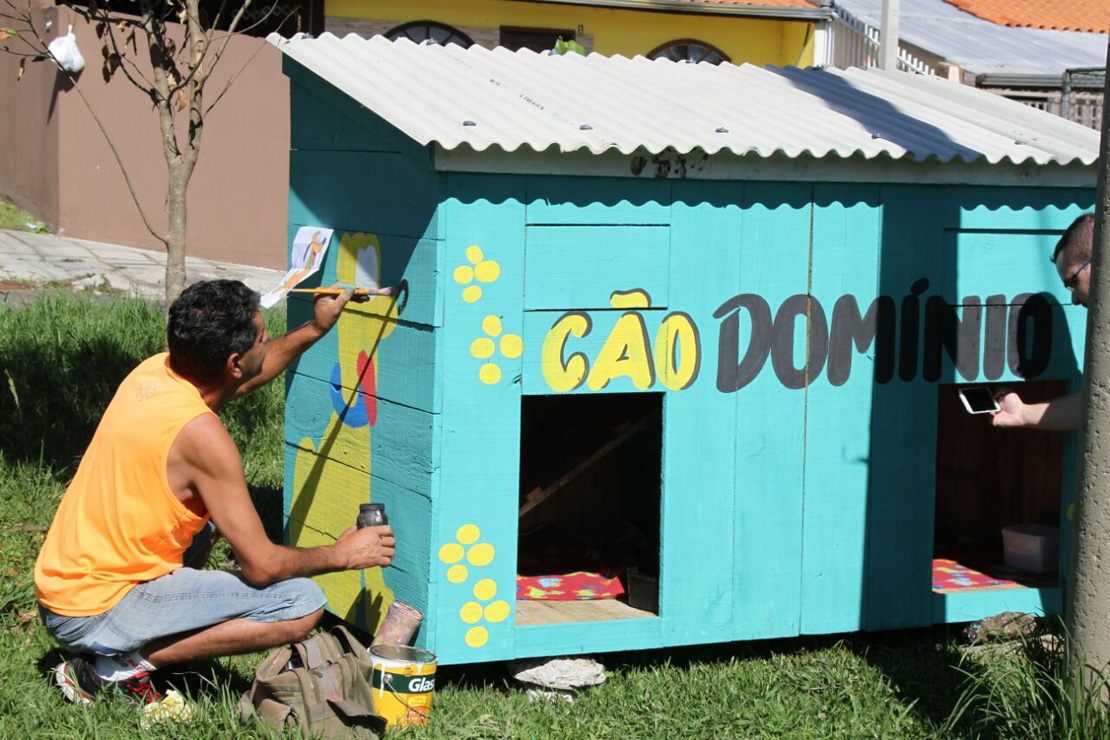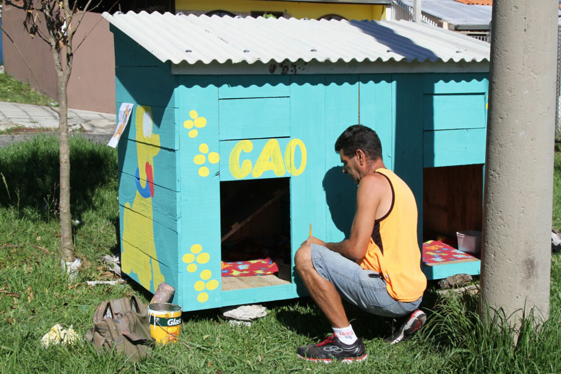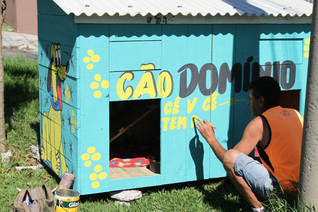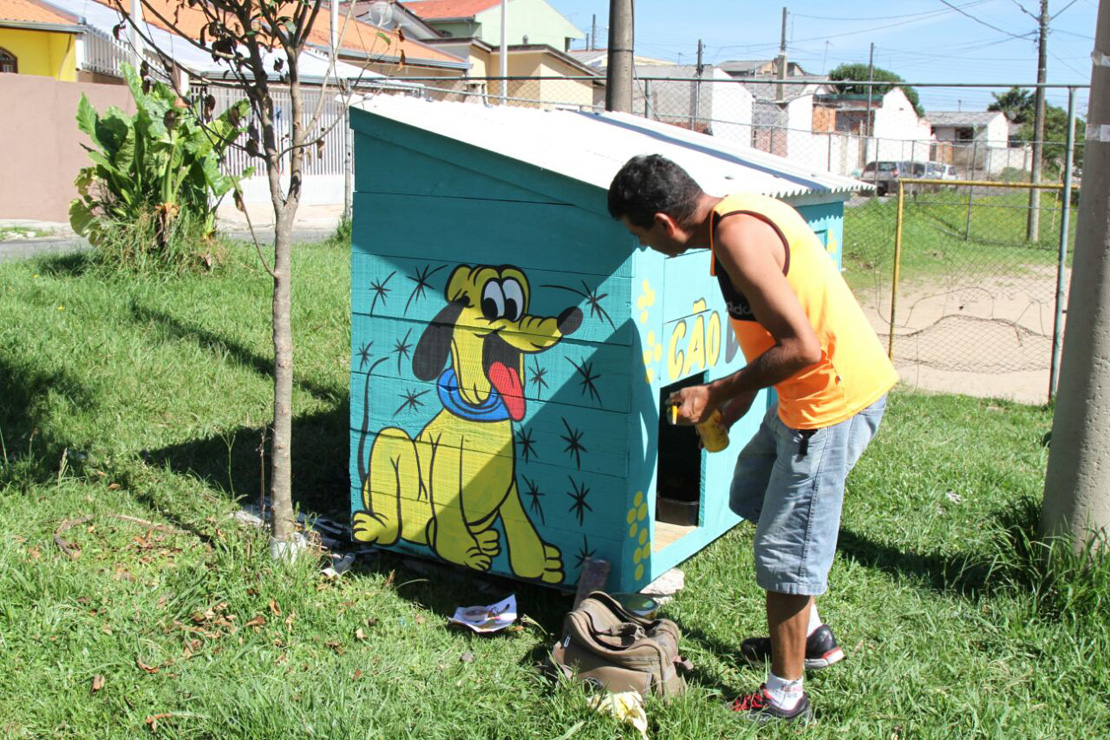 A estrutura, de madeira e telhas, foi recolocada com dois andares. O teto, que pode trazer o mínimo de conforto aos cães que ficam sempre na região, ganhou mais vida pelas mãos do pintor Antônio Marcos da Silva. “Tenho essa profissão há 26 anos. Pra mim, é mais que uma alegria poder deixar meu carinho, de coração, aqui”, definiu.