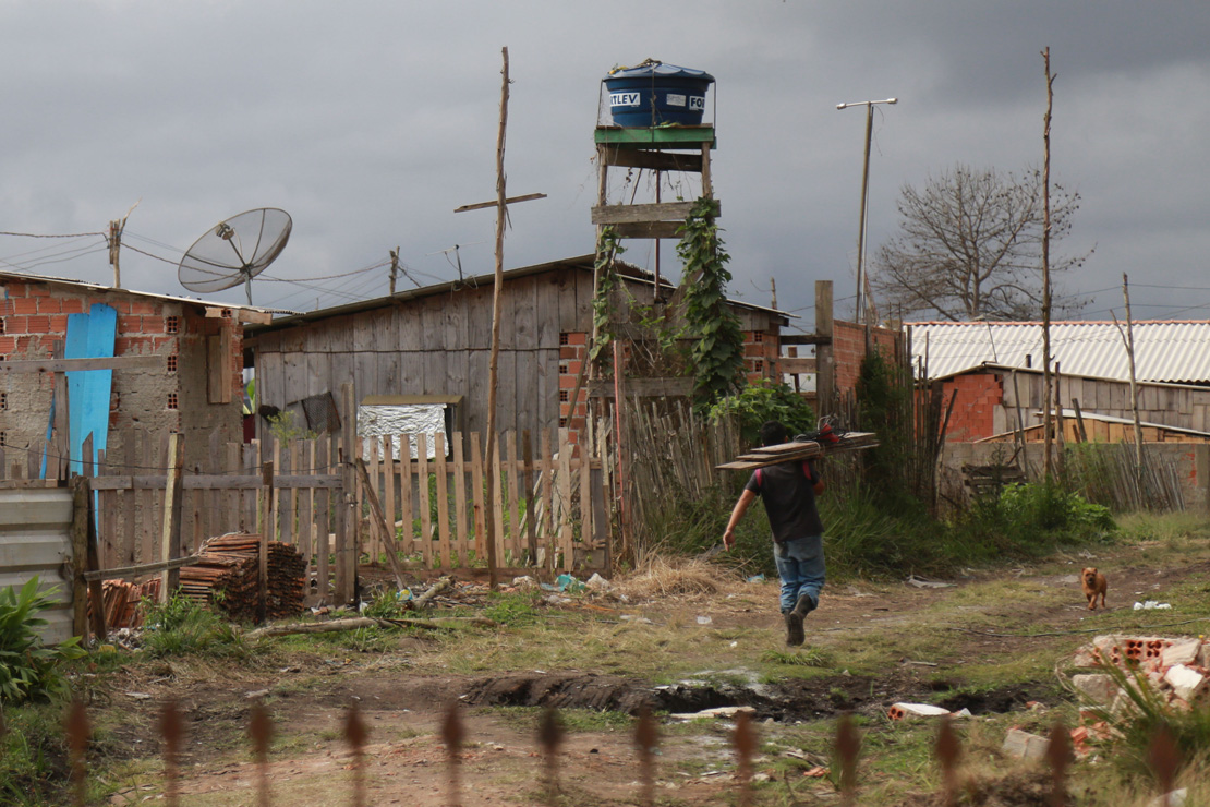 Dando marteladas e carregando tábuas, Sidnei mostrou as dificuldades daquele povo que mora bem ao final da vila. Lá não tem água e a luz, passada em fios mal encapados de uma casa para outra e arrastando-se pelo chão dos terrenos e ruas, só funciona mais ou menos durante o dia. A partir das 18h até a meia-noite, fica “variando” e nenhum aparelho funciona. “Aqui o pessoal precisa ir longe pra pegar água, trazer no lombo e deixar armazenada em latão. Nem comer direito dá, não tem mercado muito perto, tem que ir longe pegar comida, pegar bujão de gás. Hoje estamos esquentando a comida numa lata de sardinha”, disse o homem.