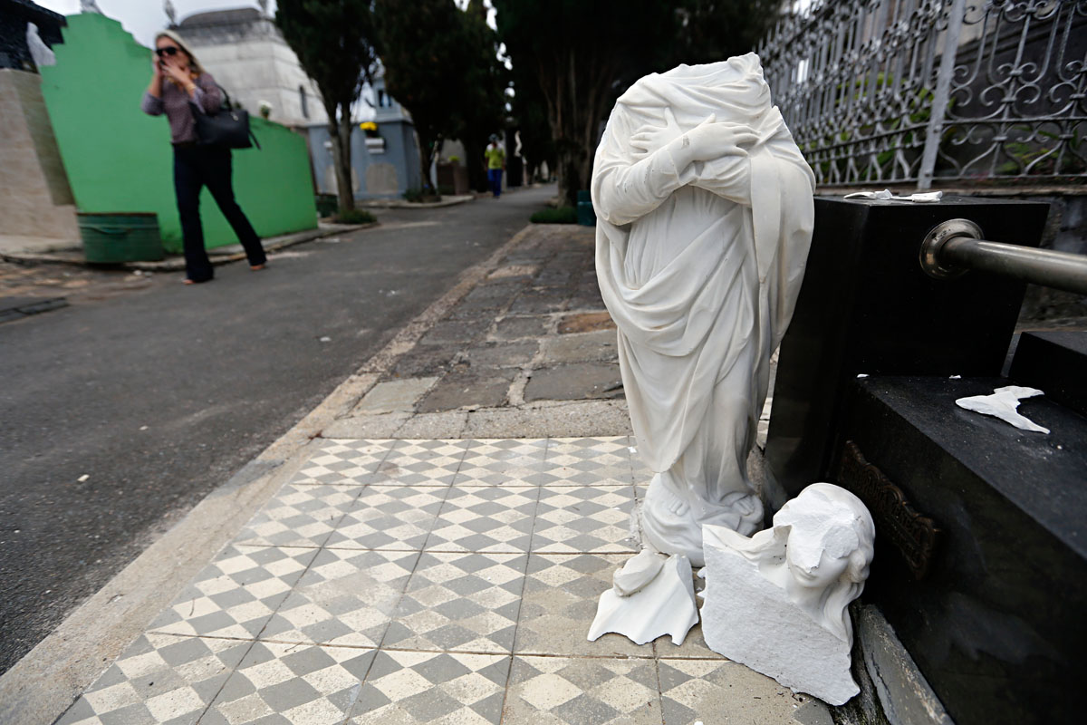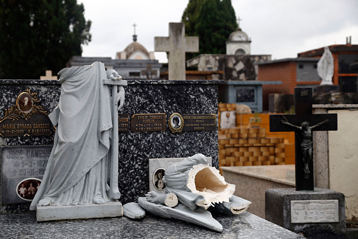 “A presença da Guarda inibe o vândalo. Havia rondas ostensivas, mas elas foram interrompidas sob o argumento de que não tinha ocorrências”, diz. Segundo a pesquisadora, a perda resultante das invasões ao cemitério é inestimável. Muitas esculturas e túmulos datam do século XIX e vieram da Europa. “É um tipo de arte que não existe mais, são objetos únicos, feitos por marmoristas italianos. São um relato do nosso passado.” Além do prejuízo artístico e histórico, o valor afetivo que as sepulturas destruídas têm para as famílias dos mortos provoca muita indignação.