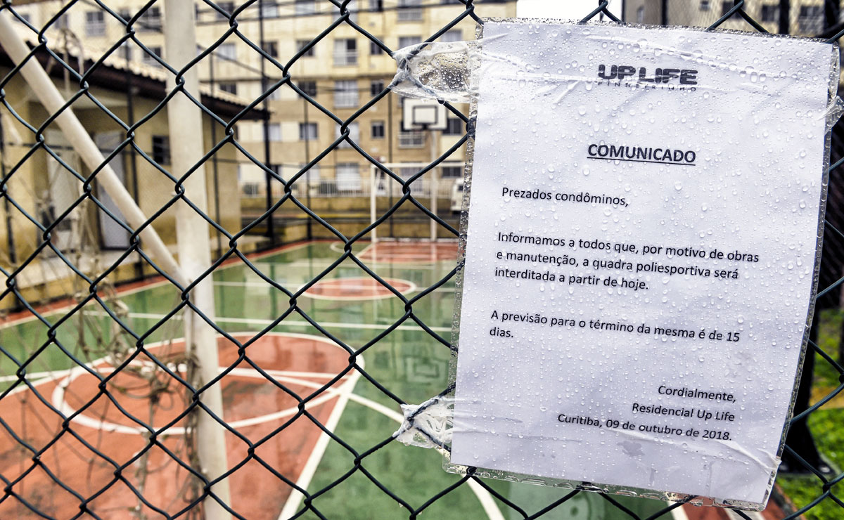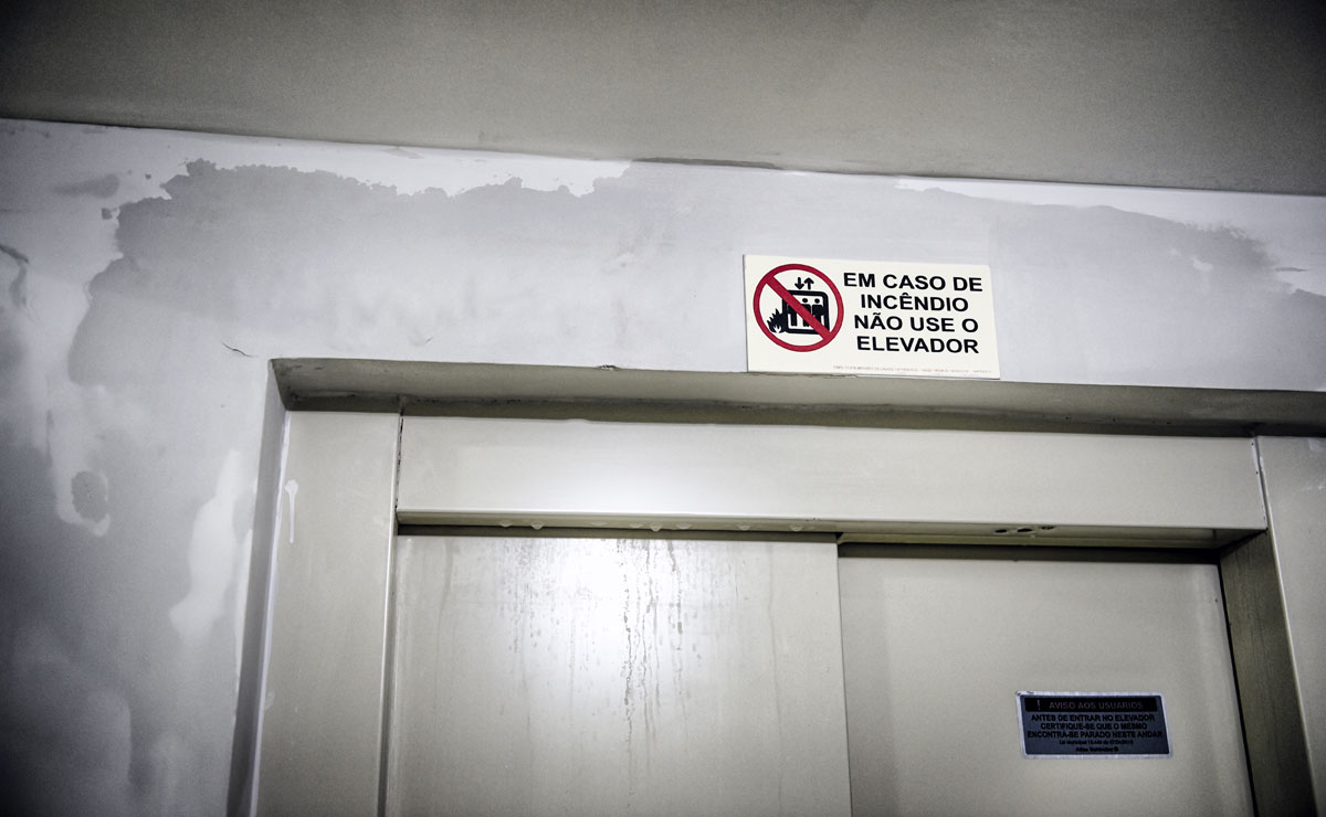 Menos grave seria se a história parasse por aqui. Logo, problemas estruturais também começaram a surgir nas áreas comuns do condomínio. Na quadra esportiva, chão rachado. Na piscina, pastilhas soltando. Nos halls de entrada, tetos rachados, desníveis no piso e alagamentos frequentes. No ático de uma das torres, o mau isolamento entre os andares provoca transtornos nos dias de chuva, inundando os apartamentos abaixo. Além de tudo isso, elevadores parados em pelo menos duas torres, por conta de infiltrações e vazamentos, obrigam moradores a utilizar as escadas e, quando funcionam paliativamente, apresentam risco de choque elétrico ou de travamento entre andares.