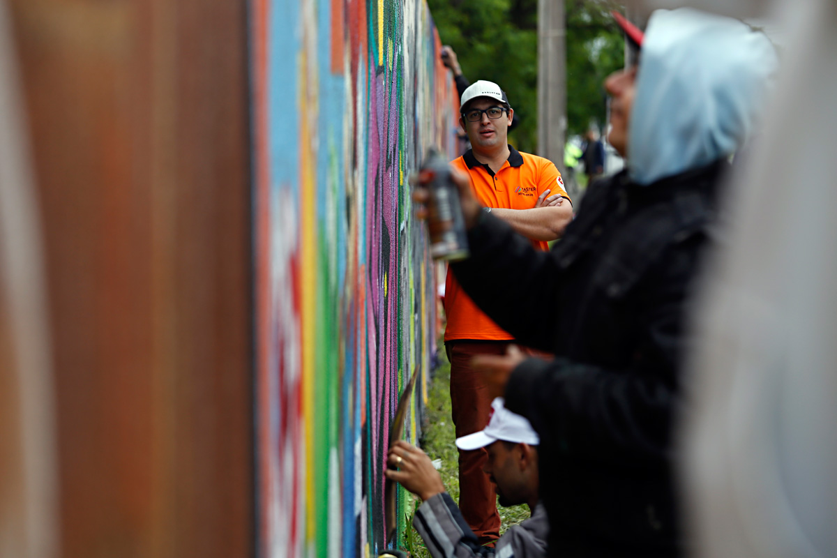 Cerca de cem artistas foram convidados para participar de evento que transformou os muros de um centro de formação profissional no Boqueirão, no domingo de 18 de outubro. A pintura tradicional ­ que costuma ser alvo de vândalos ­ deu lugar aos mais diferentes desenhos e variadas cores, escolhidos pelos grafiteiros.