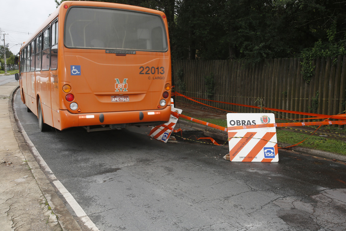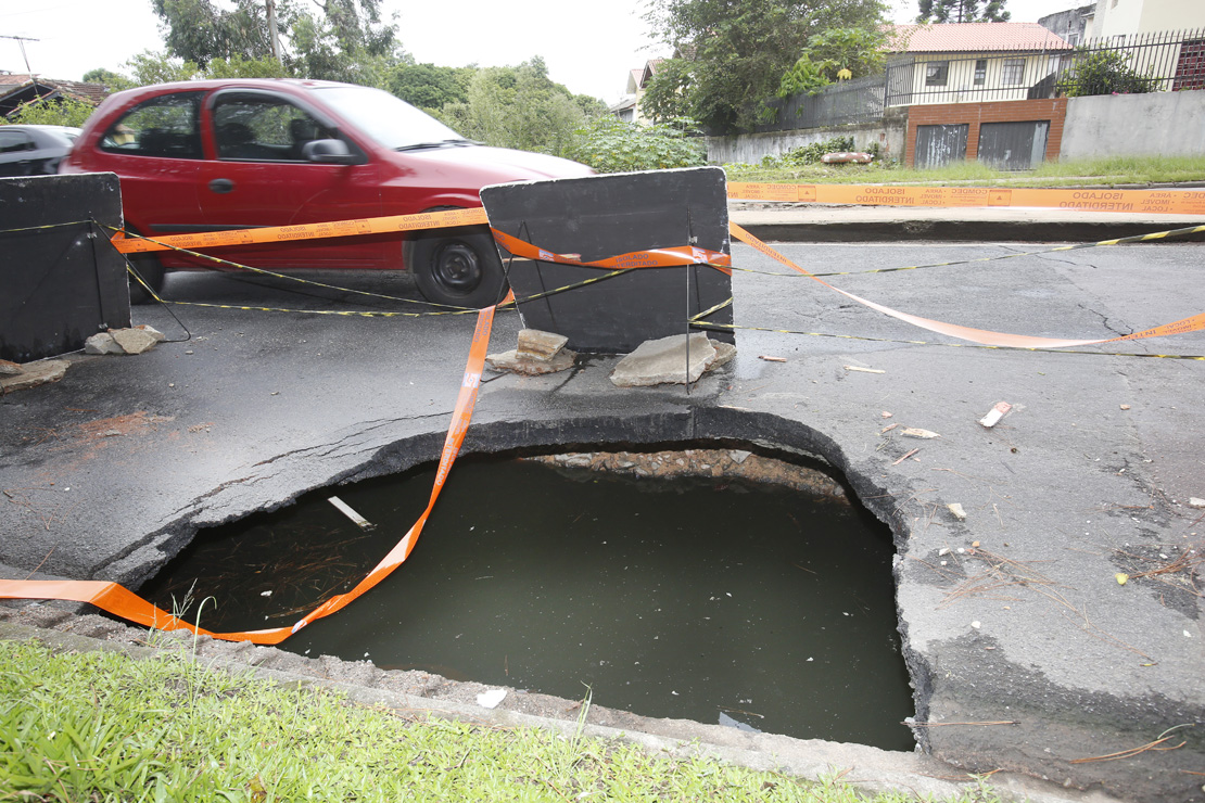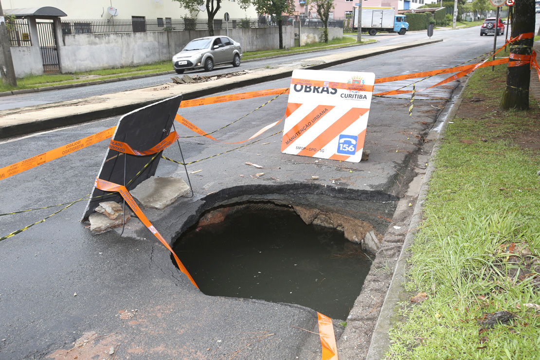 O caminho é agitado. Próximo a Rua Eduardo Sprada, esquina com a Rua Carlos Müller, tem escola, terminal de ônibus, universidade, mercado, lojas e tudo aquilo que a população necessita, mas quem precisa passar por este trecho da Cidade Industrial de Curitiba vem sofrendo bastante. Após as fortes chuvas que caíram sobre a capital paranaense, na última quinta-feira, uma cratera se abriu na rua.