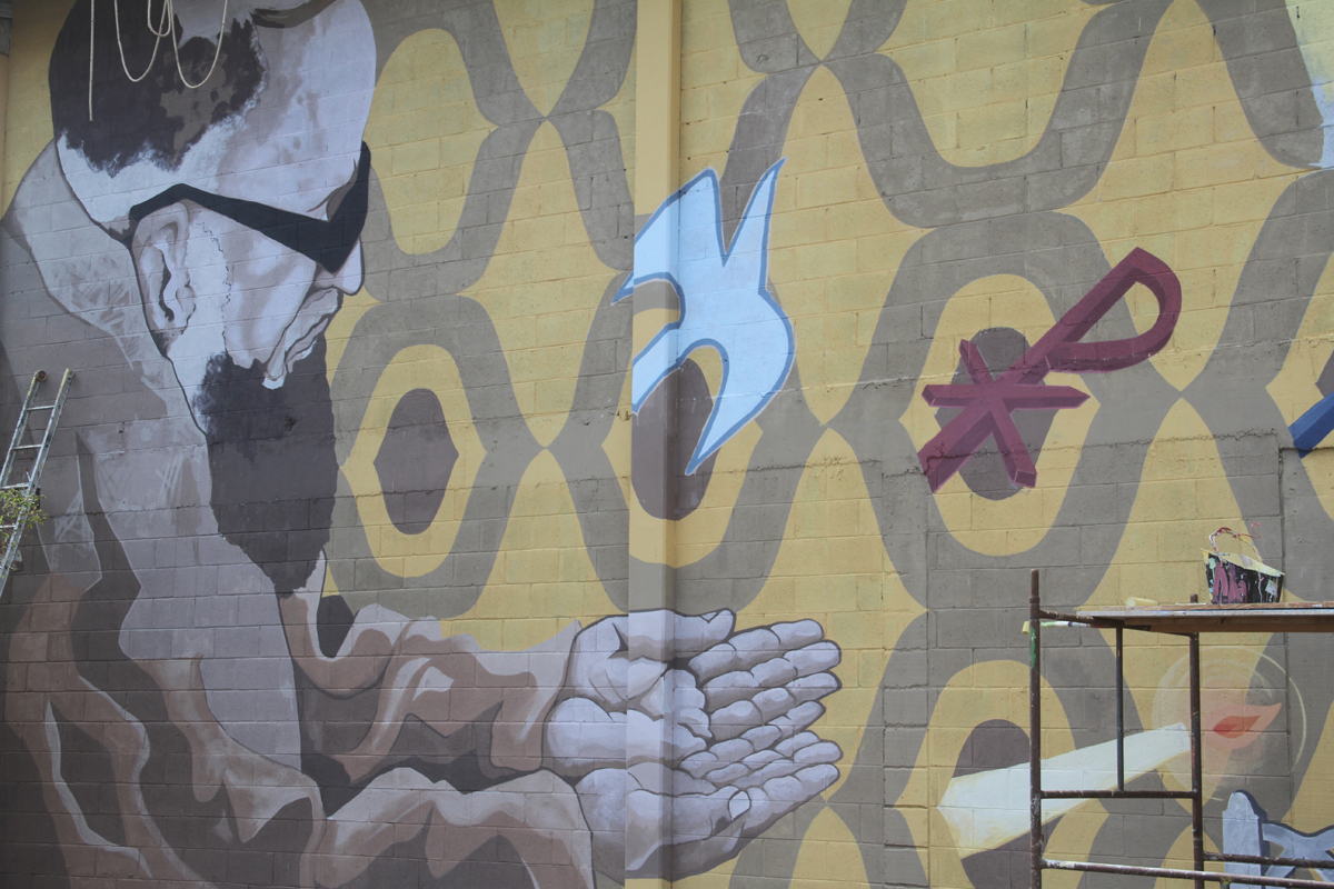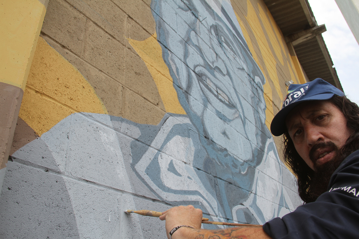 No Santuário São Leopoldo Mandic, Frei Miguel e Israel Araújo Muniz foram os escolhidos para representar o bairro. Israel é a principal liderança da vila e foi o responsável pela entrega das chaves das primeiras casas da região. Junto com eles, estão símbolos do bairro, como ferramentas que representam a característica industrial da região. “Não fugimos desta temática, não queremos destoar do espaço, mas sim fazer a comunidade interagir, se reconhecer. Isso é muito legal”, destaca Paulo Auma.
