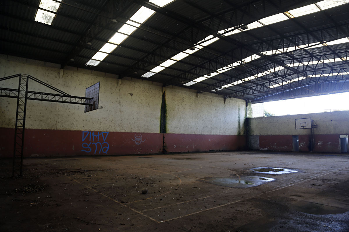 Anexo ao terreno que abrigaria o Centro Cultural Multiuso, há outra carcaça de construção sofrendo com a ação do tempo. Um ginásio que era utilizado pela Escola Municipal Albert Schweitzer e movimentava a vila virou “criação de pombo”. “Já tem 10, 12 anos que a cancha está parada, fechada, desde que a escola a entregou para a regional da CIC. A manutenção saía muito cara, e como ganhamos uma outra quadra, cedemos aquele espaço para a comunidade. Desde então, está abandonado”, diz o vice-diretor da instituição, Emídio Nicodemos Angelotti.