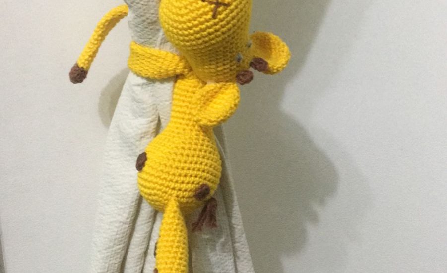 O primeiro amigurumi feito pela Gilcelene Smokowicz foi uma girafa, que serve para prender cortinas. E o último bichinho feito por ela foi um sapo, com a maior cara de gente boa. “Terminei na terça-feira, dia 5 de outubro”, conta.