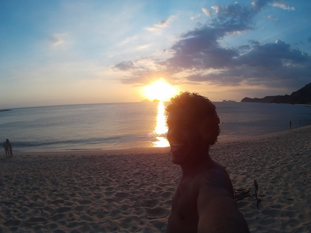 Optando por fugir de rodovias, Everton priorizou trilhas de terra e avenidas na beira-mar, o que garantiu visuais incríveis. Pedalava das 9h às 17h, uma média de 100 km por dia. O calor era aliviado pelos banhos de água salgada ou cachoeira. Pelo caminho, ia conhecendo gente. “Passei o Natal num hostel em Paraty com um monte de turistas e o Réveillon, em Ilha Grande, com um amigo”. No dia 3 de janeiro chegou ao Rio. Além de inesquecível, a empreitada foi econômica. Everton gastou R$ 600 em hospedagem e uma média de R$ 10 por dia em alimentação. “Recomendo a todos. Se eu consegui, qualquer um consegue”, brinca.