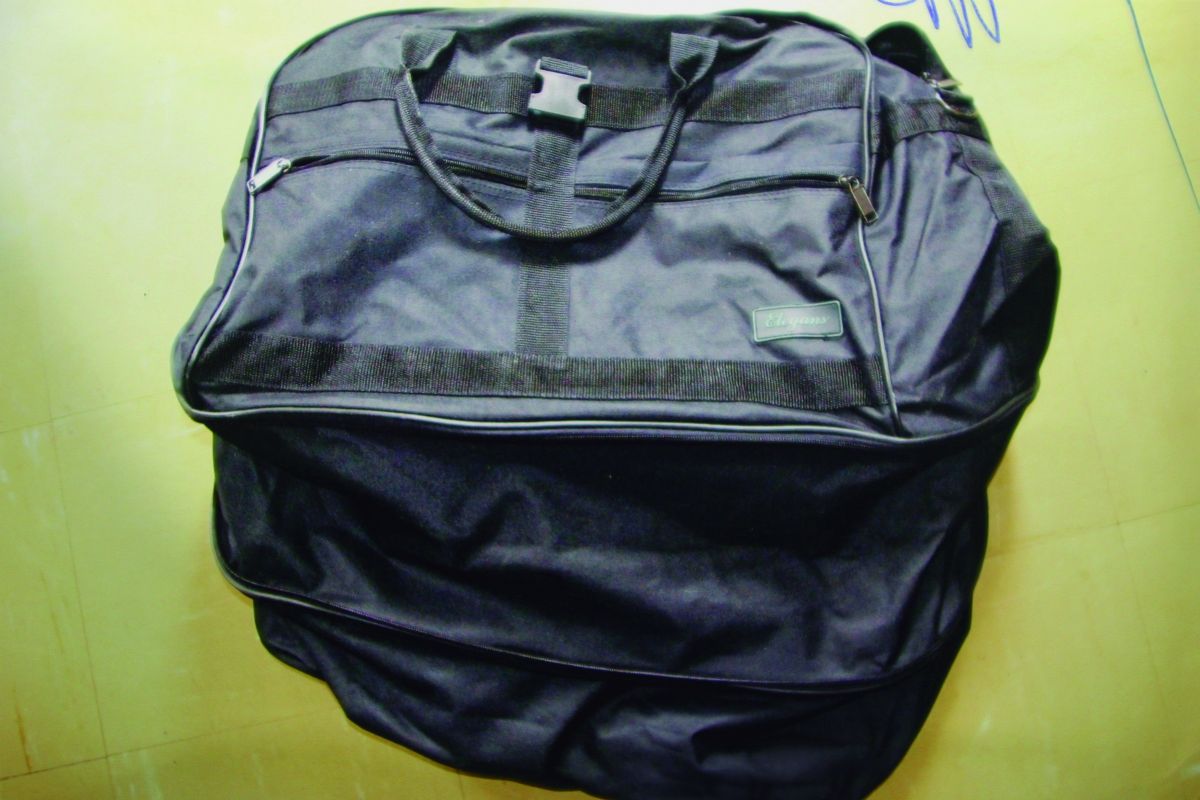 Mala em que Rachel Genofre foi encontrada, sob uma escadaria da Rodoferroviária. Foto: Aliocha Mauricio/Arquivo/Tribuna do Paraná