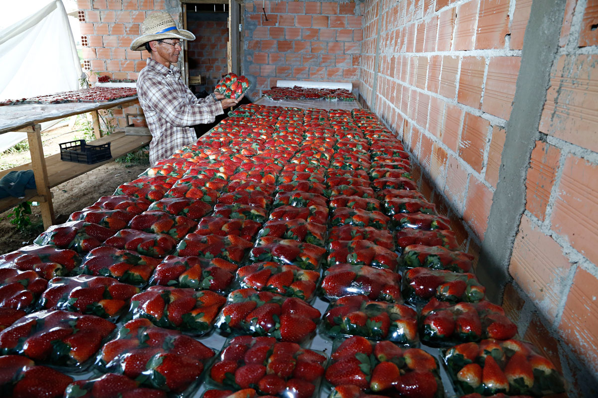 O município tem 65 hectares de cultivo de morango, que renderam 2.535 toneladas da fruta na última safra (2014). Segundo o especialista, a previsão para este ano é otimista, já que as mudas foram plantadas no tempo certo, em junho. No ano passado, a produção foi prejudicada pela Copa do Mundo, que provocou um intenso trânsito de turistas do Chile para o Brasil e atrasou a chegada das plantas.