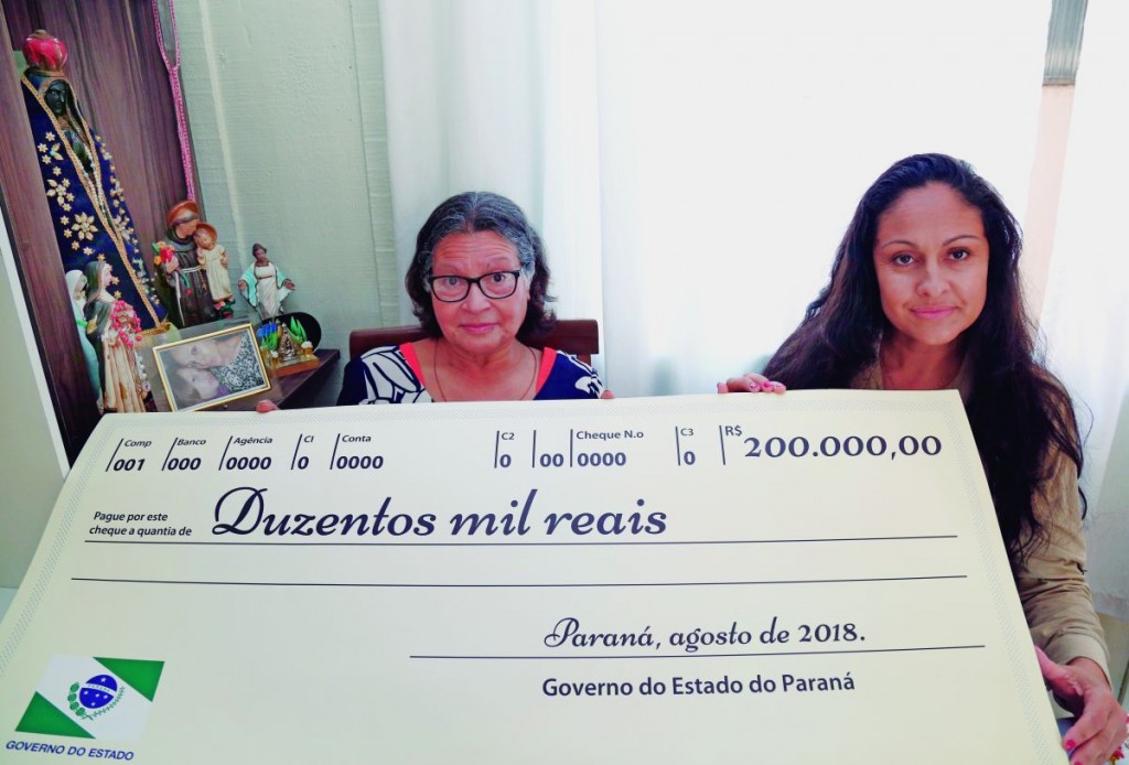 “Eu já estava deitada pronta pra dormir, pensando como que eu ia fazer pra passar o resto do mês com só R$ 50 na conta. Nunca imaginei que ia dormir pobre e acordar rica”, comemora a aposentada Maria Salete Alves Nowacki, 65 anos, que ganhou R$ 200 mil no sorteio do Nota Paraná, no início do mês de agosto. Depois de momentos muito sofridos em família, quando descobriram o câncer de uma de suas netas, e da filha ter o carro roubado com todo o seu material de trabalho e documentos pessoais e das filhas, o dinheiro veio em boa hora. Vai garantir para Maria Salete a tão sonhada casa própria, o tratamento da neta e um futuro com menos sufoco.