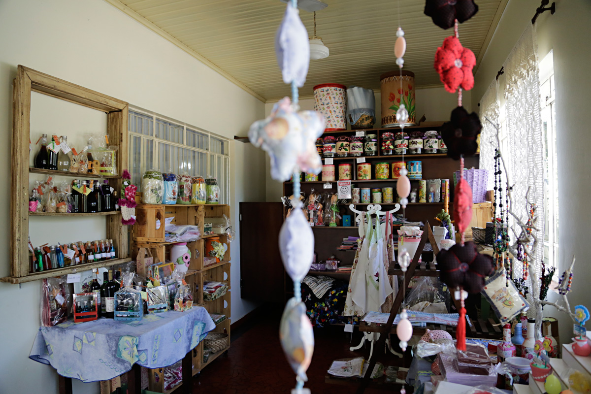 O lugar escolhido foi uma casa da família, que não estava ocupada e foi totalmente reformada pelas sócias para o novo empreendimento. ‘Queremos valorizar a produção daqui, não pegamos nada de fora. Quando o turista vem pra cá, ele quer comprar coisas que são daqui‘, comenta Gemma, sobre os produtos utilizados na preparação de todos os bolos, doces e tortas do café colonial e também sobre o artesanato vendido na lojinha do estabelecimento.