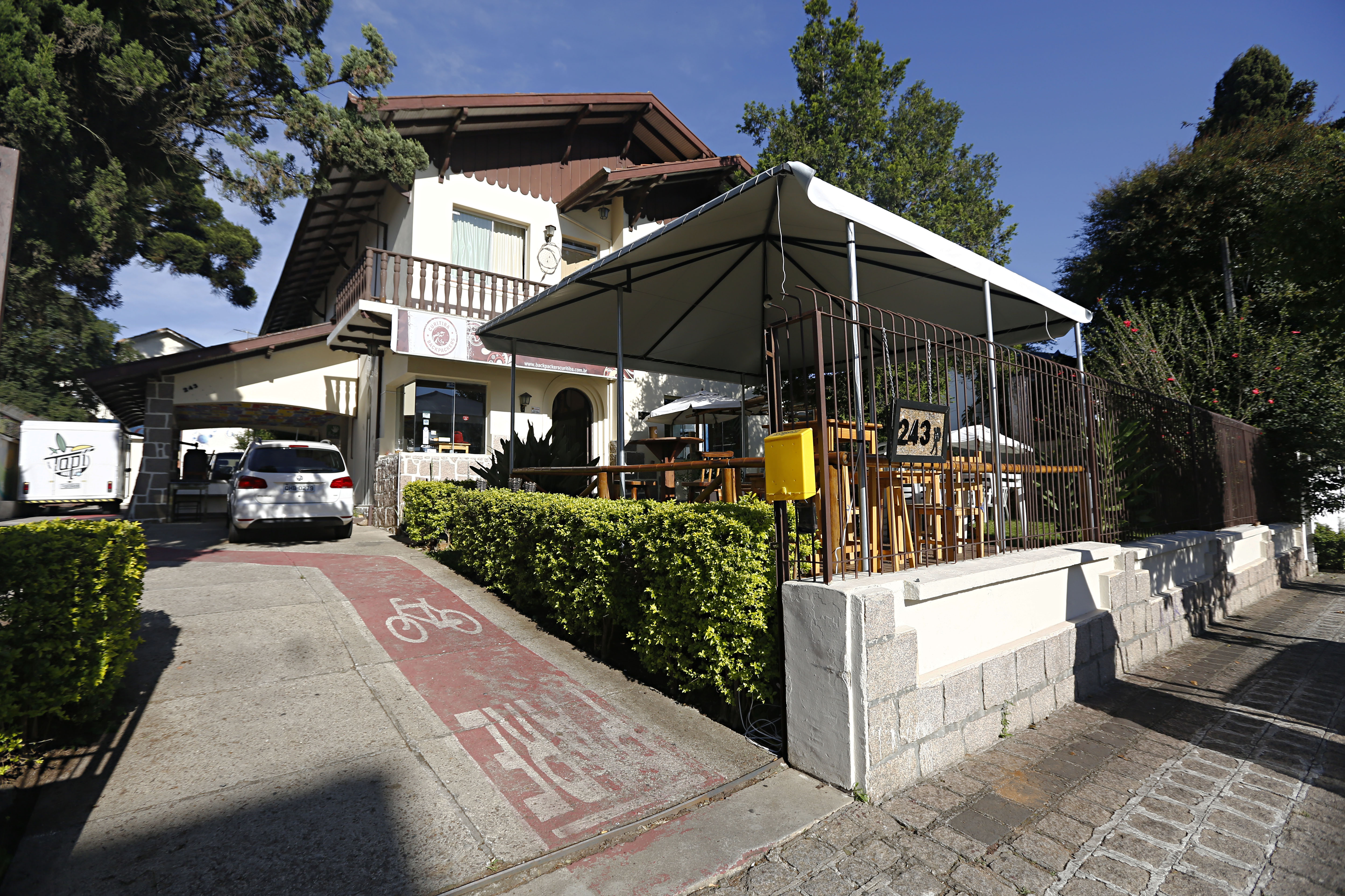 Há cinco anos, quem chega à porta do Curitiba Backpackers é recebido com uma placa que avisa ser ali o hostel “mais de boa” da capital. Logo na entrada, uma mesa de sinuca, uma rede estendida no deque e grafites multicoloridos. O local dá pouso a brasileiros e estrangeiros que passam pela cidade em viagem de turismo, a trabalho, por estudos, eventos ou para prestar concurso público. Além de estadia a partir de R$ 45 a diária, o hostel atrai também público local, pois oferece aulas de yoga, festival de food trucks, café da manhã, bar, confeitaria e festas.